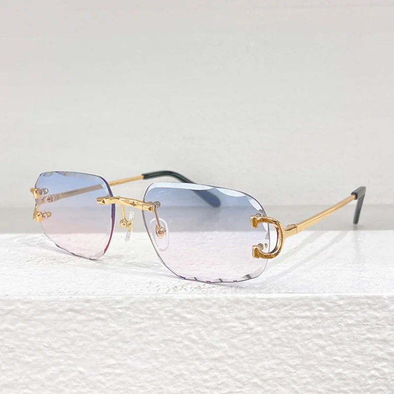 0092O Square Diamond Cut Gradient Sunglasses Uv400 Designer Gold and Silver Rimless Frameless Ladies and Men Eyeglasses
