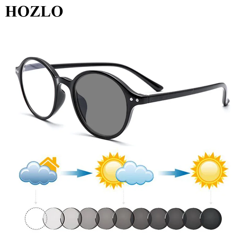 Retro Round TR90 Photochromic Presbyopia Sunglasses for Women Men Rivet Reading Glasses Magnifier Longsighted Eyeglasses